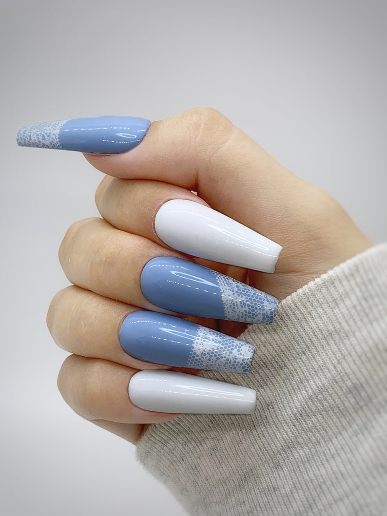 White And Blue Acrylic Nails Coffin Nail And Manicure Trends