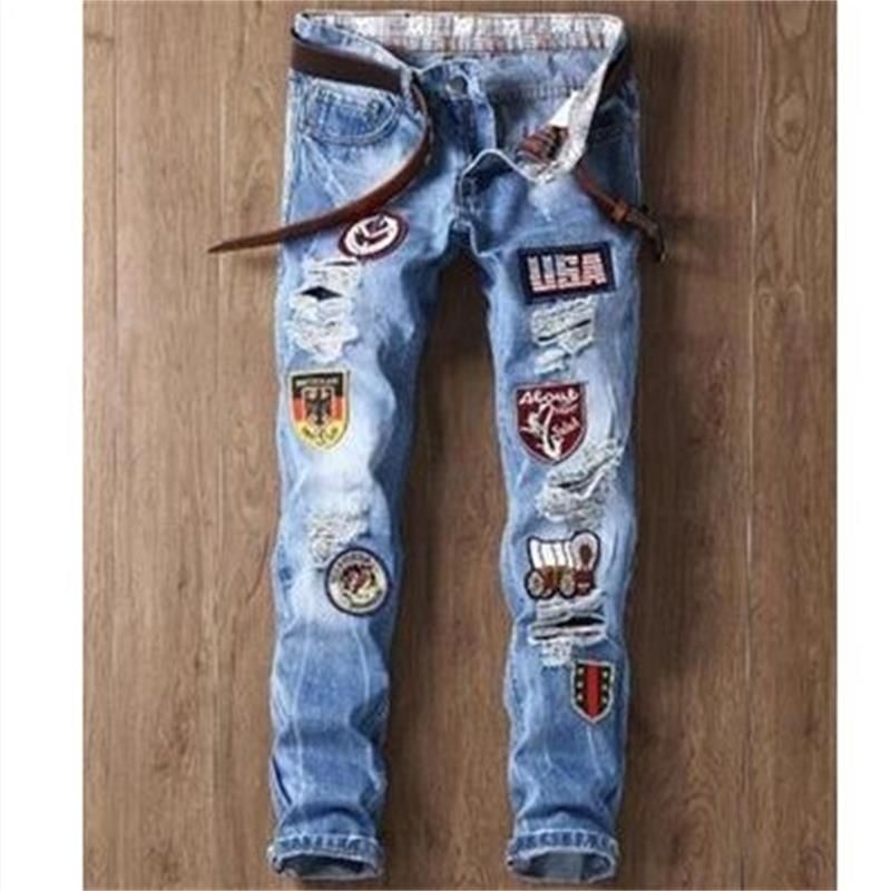2021 2019 Men For Jeans Ripped Skinny Slim Straight Frayed Denim Trousers New Fashion Sticker Skinny Biker Jeans Plus Size From Candice98 31 88 Dhgate Com