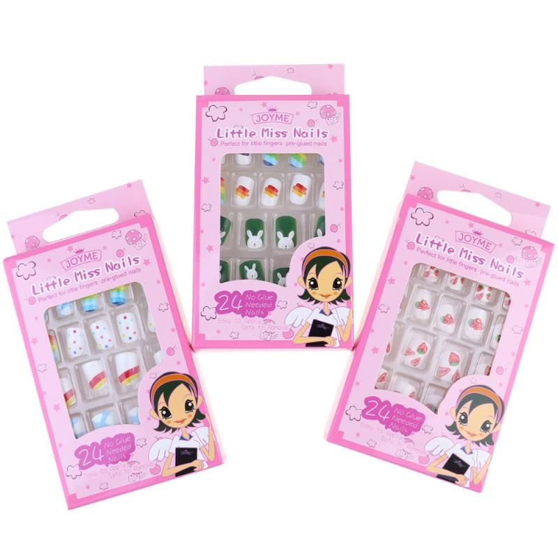 Buy Online 24pcs Little Miss Nails Adorable Fake Nails For Children Kids Finger Full Cover Nail Tips Lovely False Nails For Party Cosplay Alitools