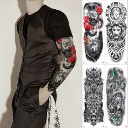 Large Full Arm Evil Temporary Tattoo Stickers For Women Men Beauty Clock Skeleton Lion Pattern Fake Sleeve Tattoos Papers Temporary Tattoos Aliexpress