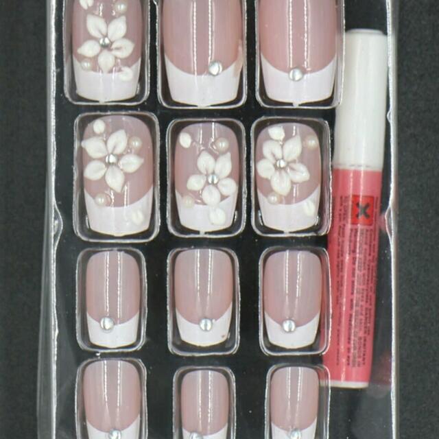12pcs Set Short Pre Design Elegant French False Acrylic Nails With 3d Flowers Decorations 2g Glue Fn123d 42 Health Beauty Hand Foot Care On Carousell