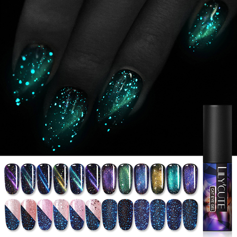 Buy Online Lilycute 5ml Auroras Luminous Cat Eye Nail Gel Polish Glow In The Dark 7d Magnetic Glitter Gel Varnish Soak Off Uv Led Nails Alitools