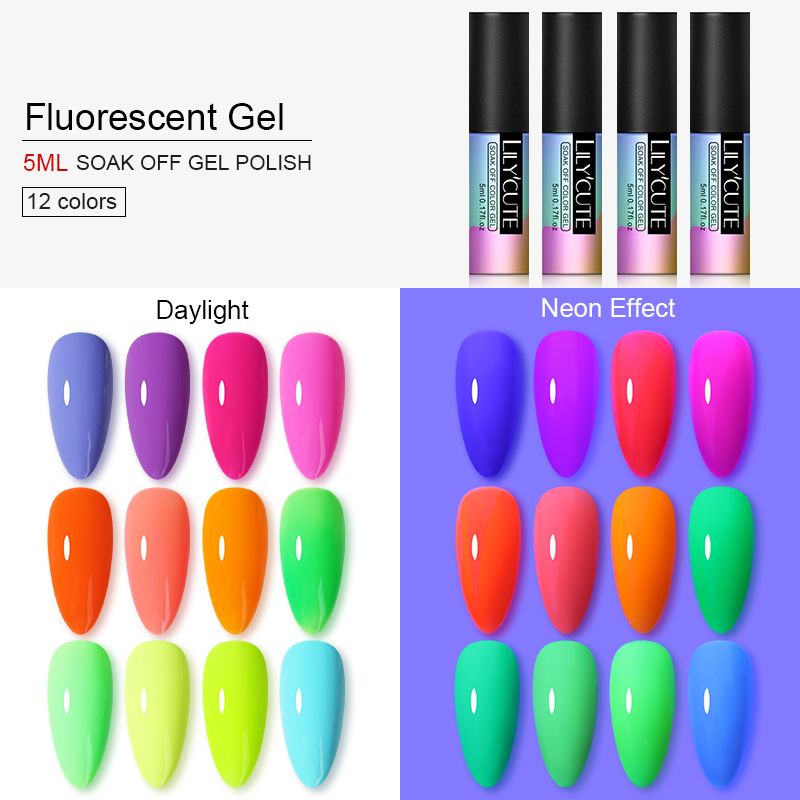 Lilycute 5ml Fluorescent Gel Nail Polish Glow In Dark Neon Uv Led Gel Soak Off Ebay