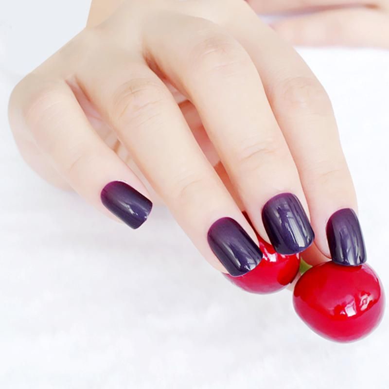 Matte False Nails Short Square Head Pointed Dark Purple Fake Nails Ful Ninthavenue Europe
