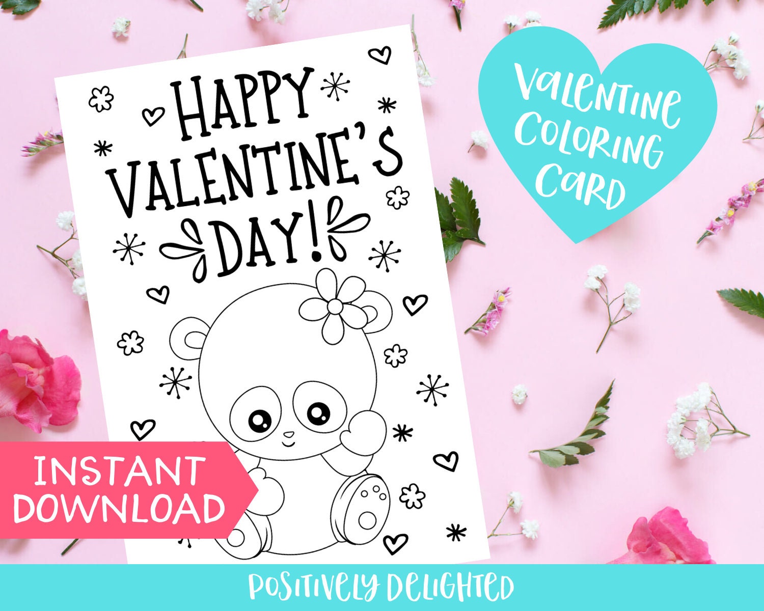Panda Valentine Coloring Card Printable Valentine S Day Etsy