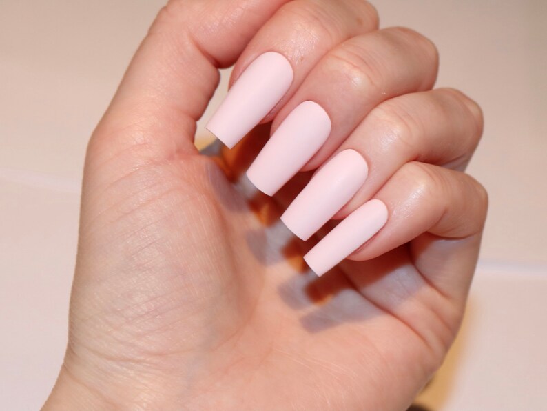 Matte Pastel Pink Square Nails Pink Fake Nails Pink Press On Etsy